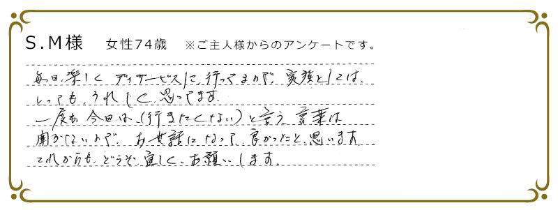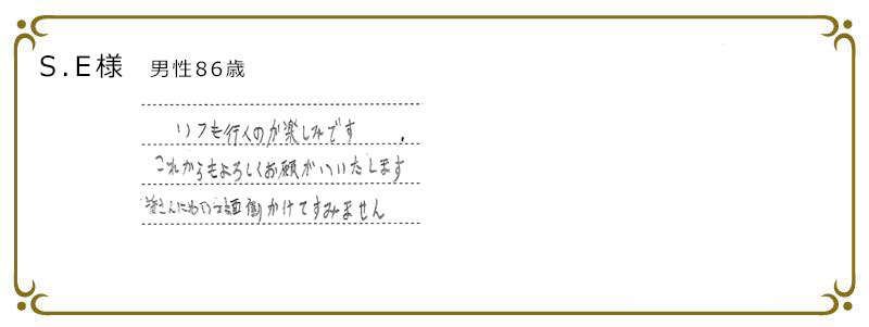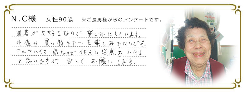 - ご自宅へ送迎専用車でお迎えにまいります。元気にお会いできて、うれしい瞬間です。