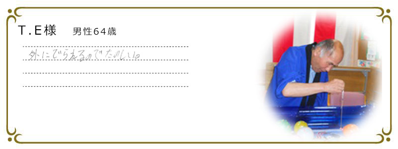- 季節ごとの行事や趣味的なサークル活動、ボランティアによる講演会など多彩なレクリエーションをご用意しております。強制ではなく、ご利用者様の体力に合わせて行います。