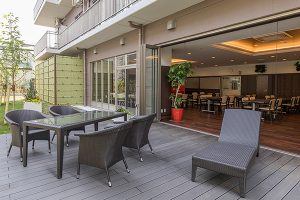 毎日のお食事をお召し上がりいただくダイニングは、窓から緑豊かな庭園を眺められる開放的なスペースです。季節ごとの様々な行事を行ったり、ご家族様との語らいもこちらで楽しんでいただけます。